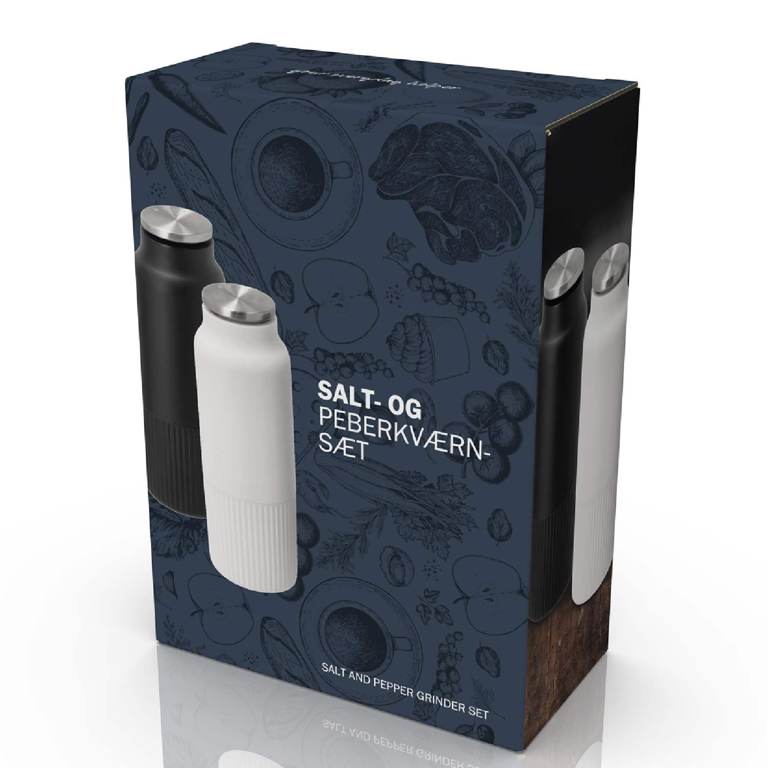 Druskos ir pipirų malūnėliai, rinkinys – modernūs, kontrastingų spalvų malūnėliai su reguliuojamu keraminiu mechanizmu