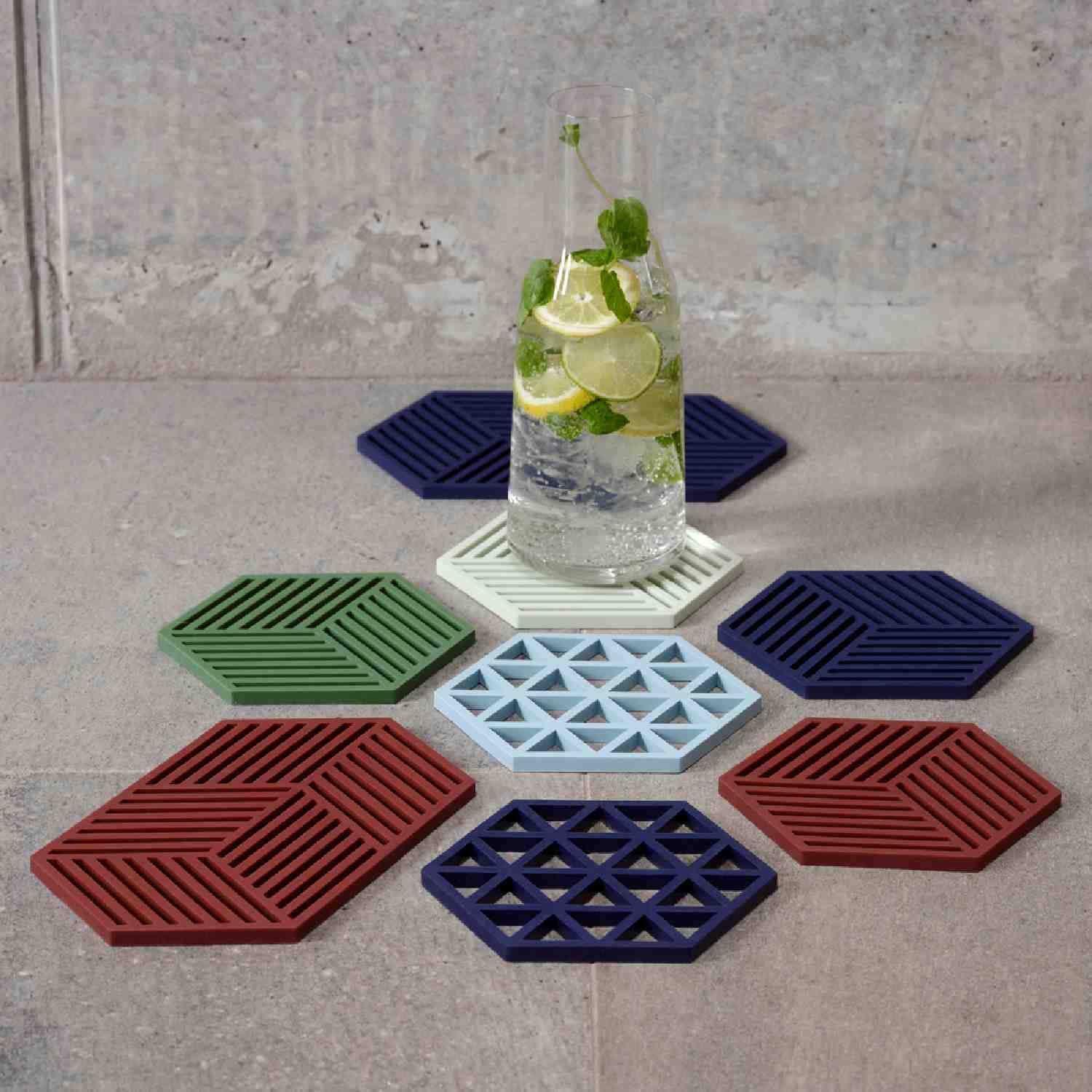 Karščiui atsparus padėkliukas iš silikono yra tiek grafiškai dekoratyvus, kad norisi keletą jų išdėlioti per visą stalą net nieko ant jų nededant. Jie atsparūs karščiui ir lengvai prižiūrimi – kasdienai ir šventei.