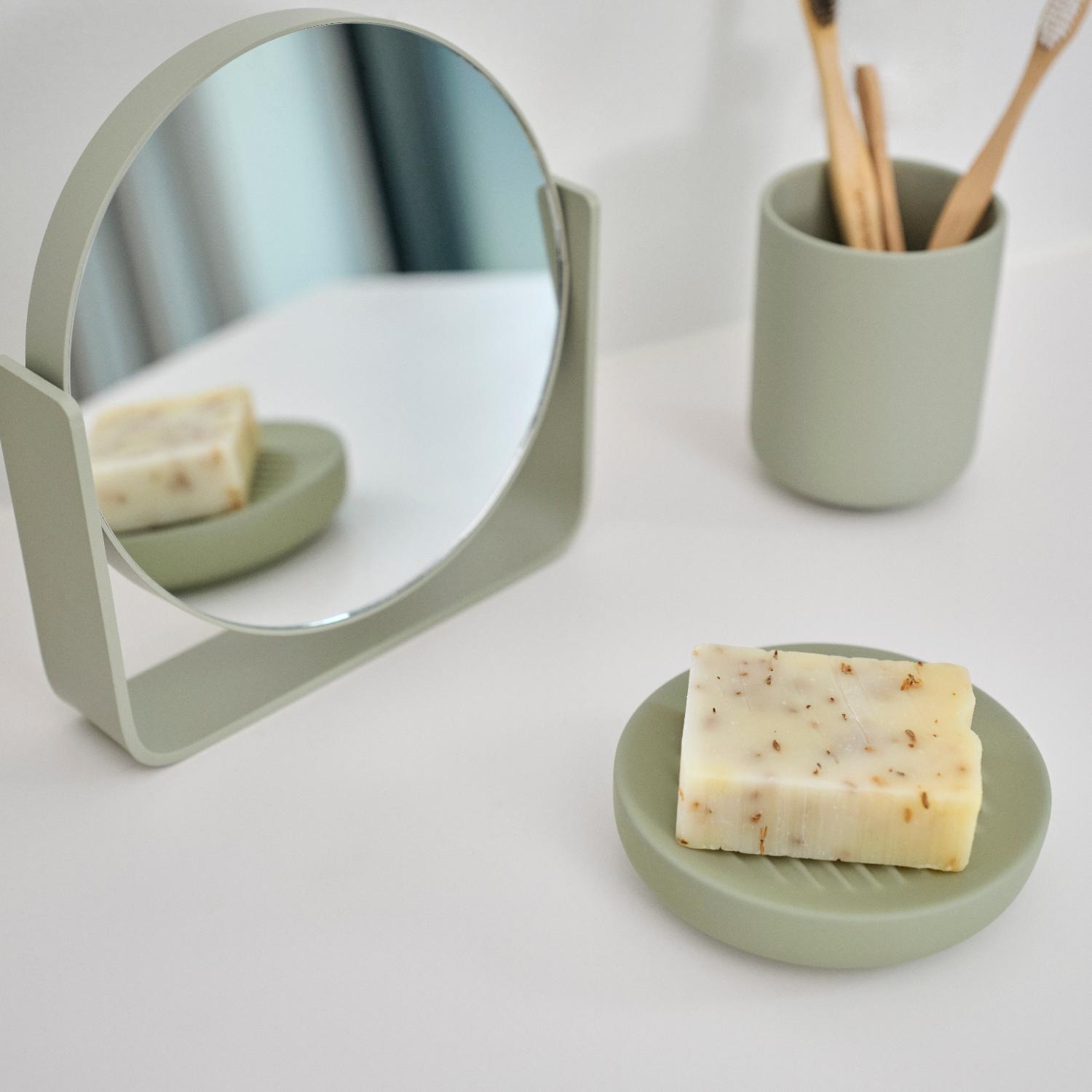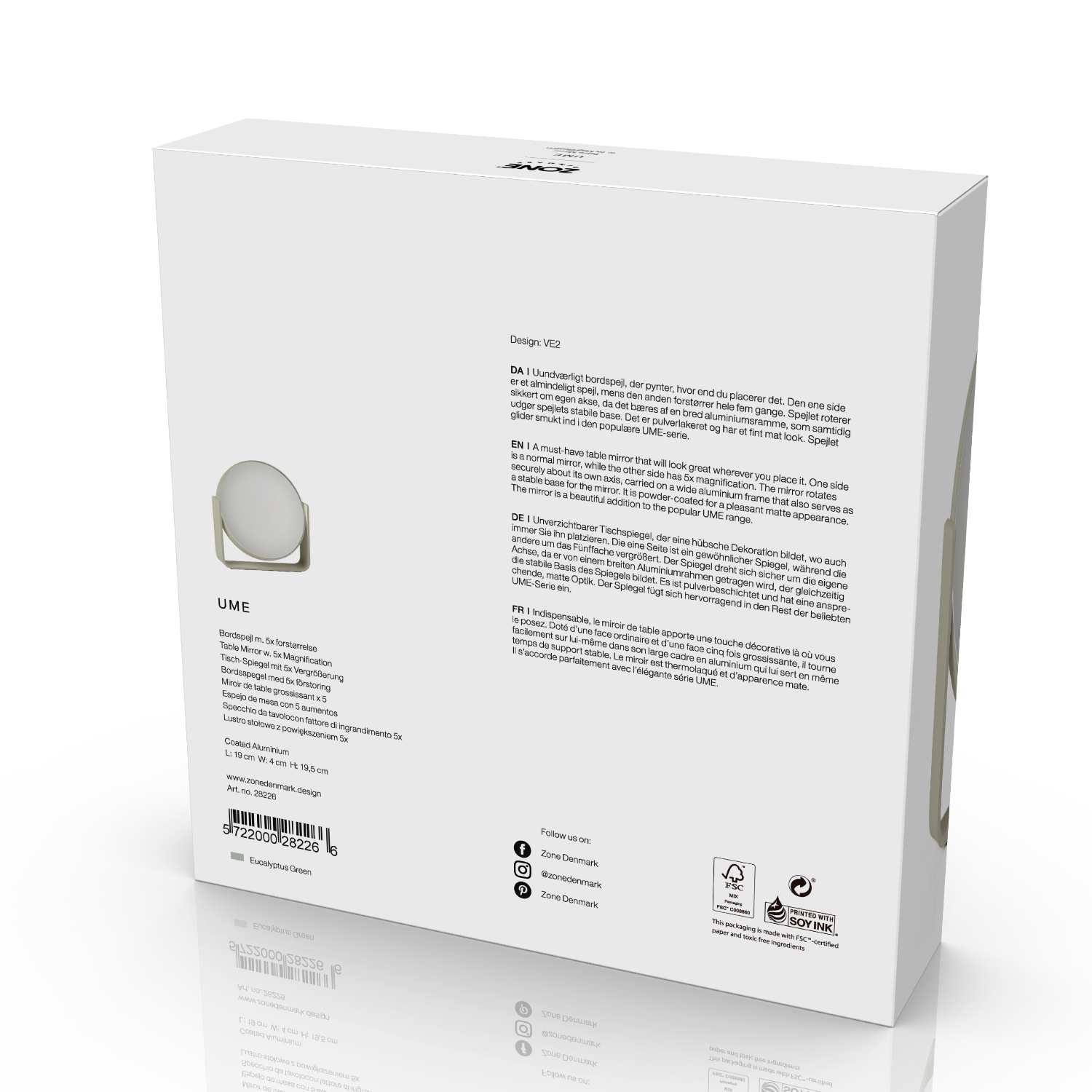 Kosmetinis stalinis veidrodis Ume – būtinas kasdieniam ritualui, stabilus ir stilingas, su dviem veidrodinėmis pusėmis: įprasta ir 5x padidinimo.