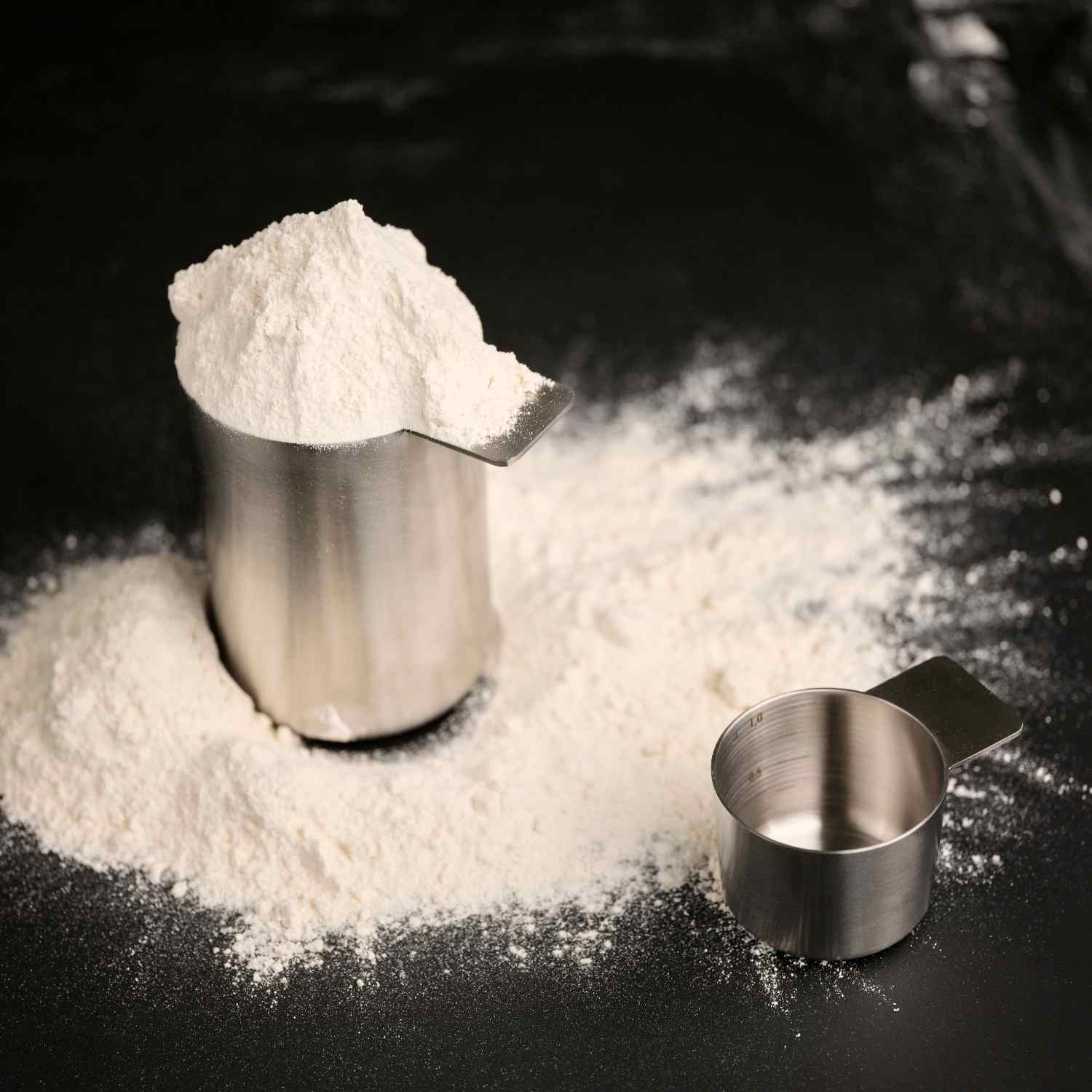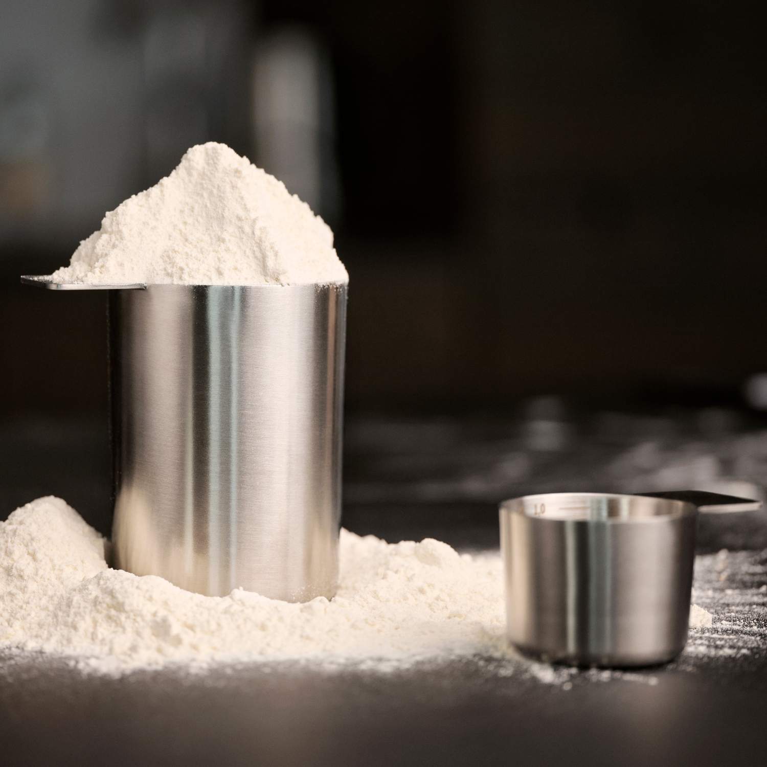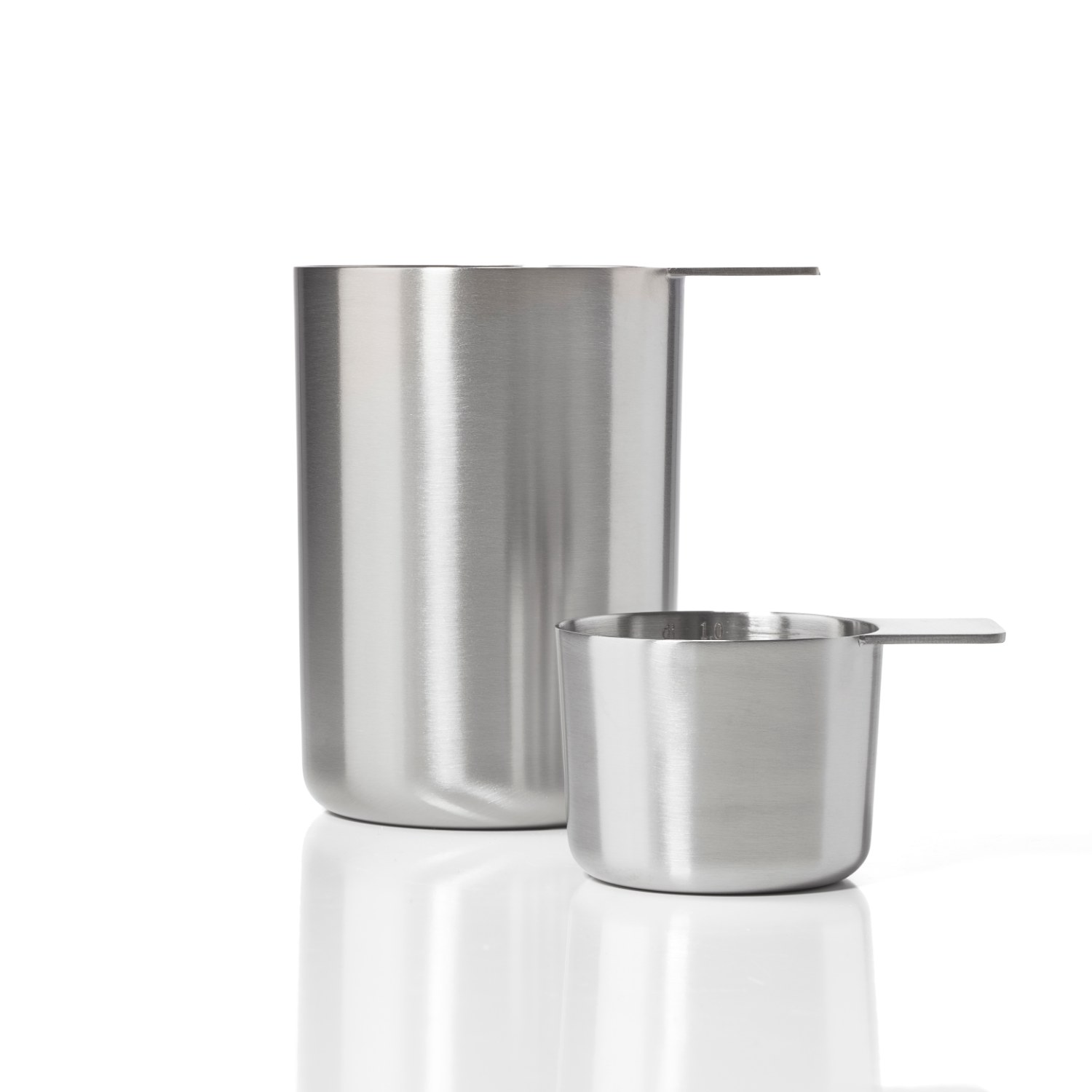 Matavimo indų rinkinys – du nerūdijančio plieno matavimo puodeliai: 100 ir 500 ml, skirti kasdieniam gaminimui.