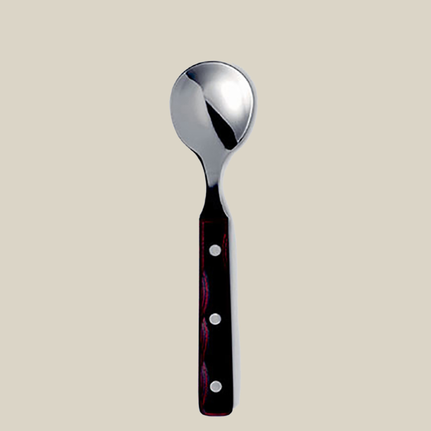 Šaukštelis druskai ir prieskoniams Gense Old Farmer Classic – mažas, elegantiškas įrankis iš nerūdijančio plieno ir medžio laminato kotelio.