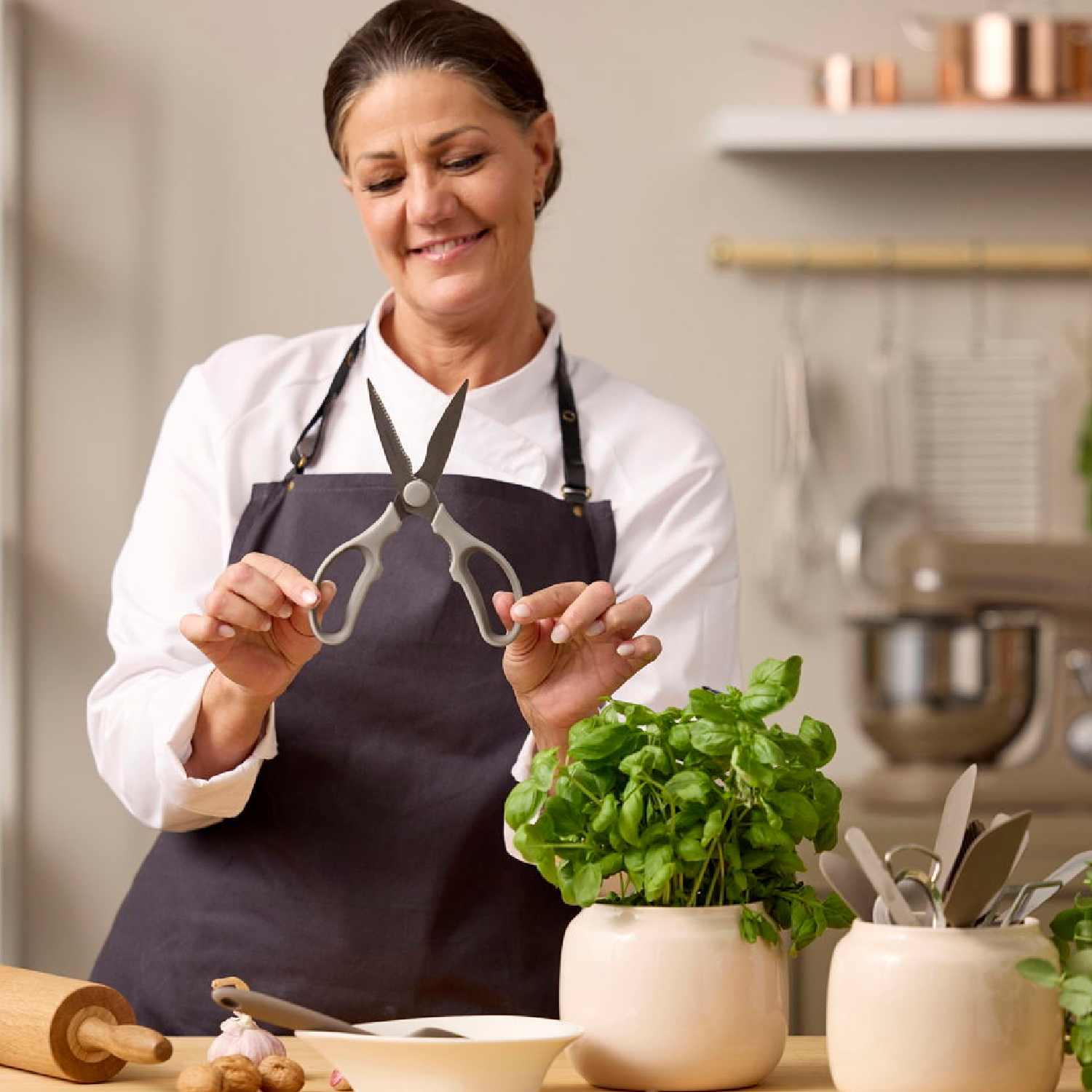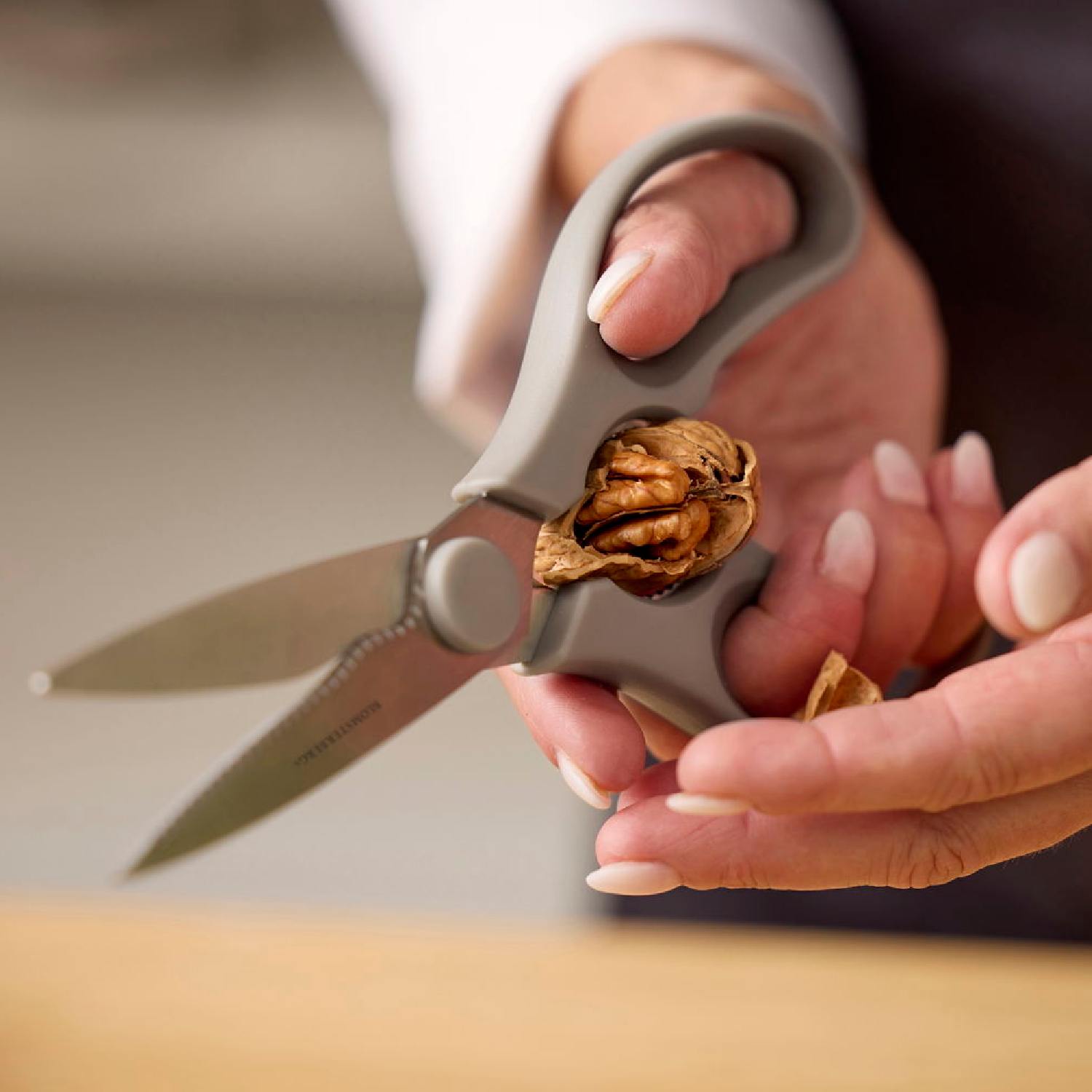 Virtuvinės žirklės – patikimas kasdienis įrankis smulkiems ir stambesniems virtuvės darbams.